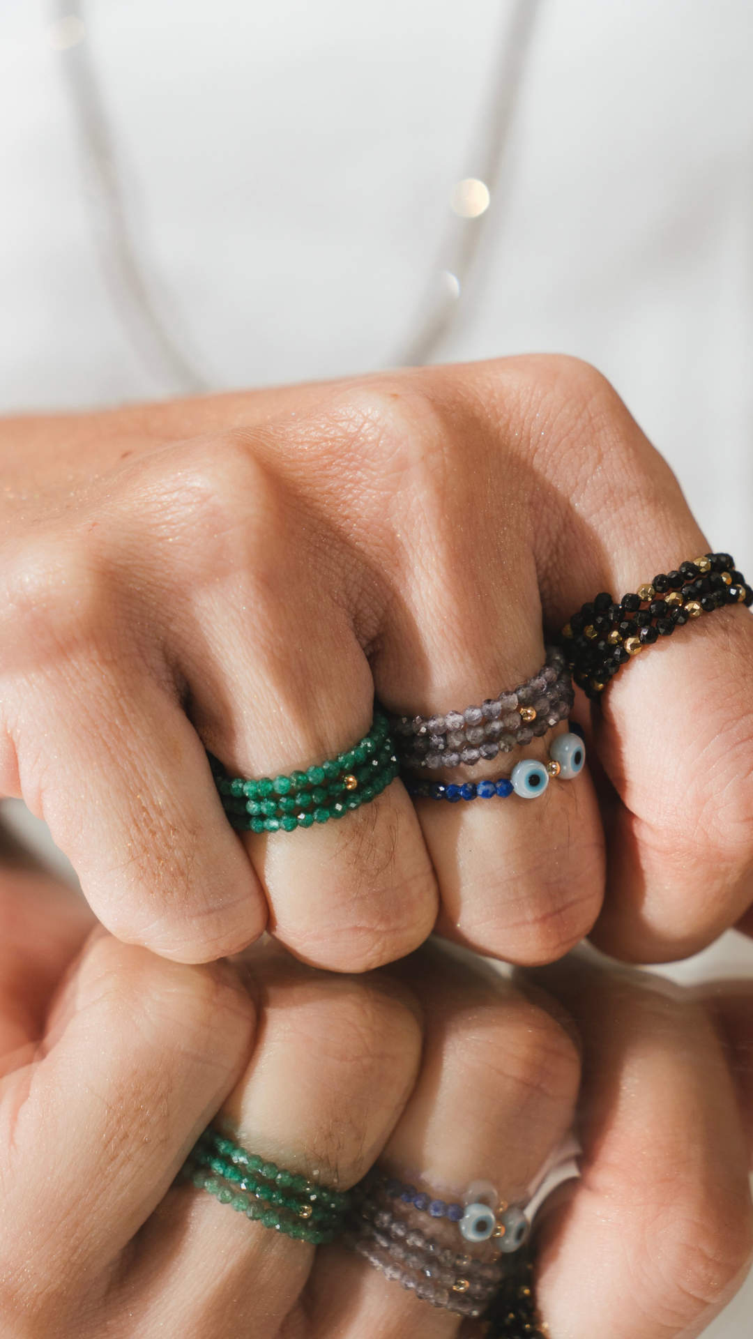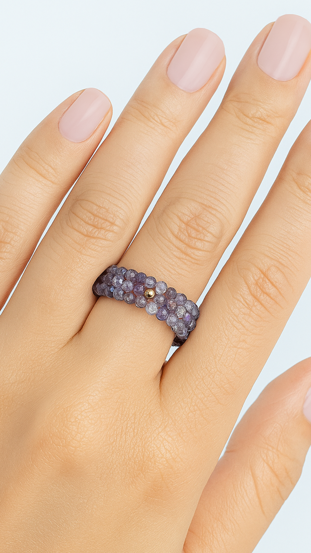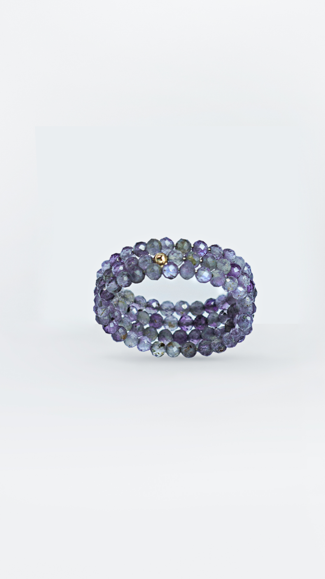 Anel de 3 voltas com Iolita e 1 esfera em Ouro amarelo 18k.