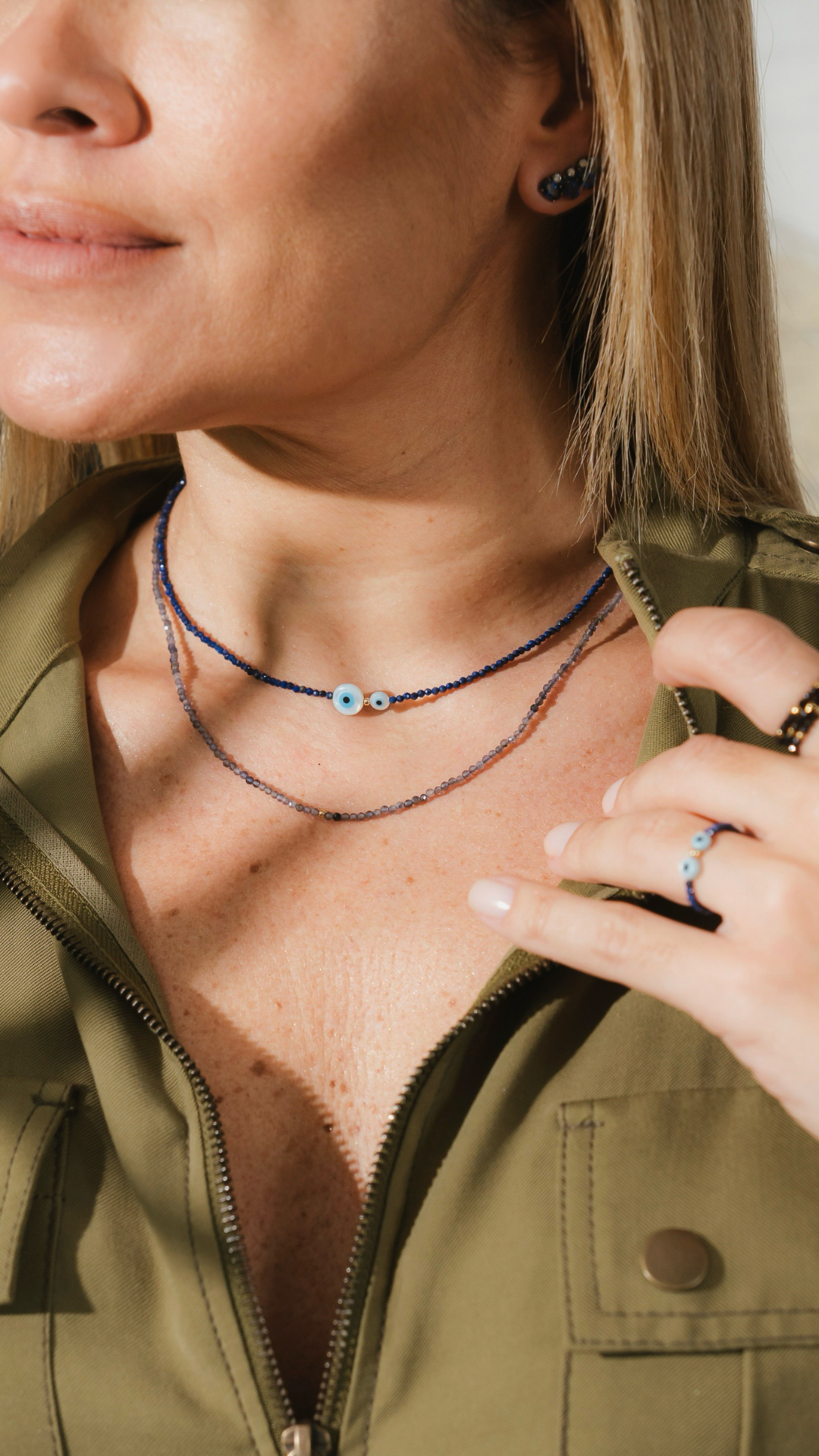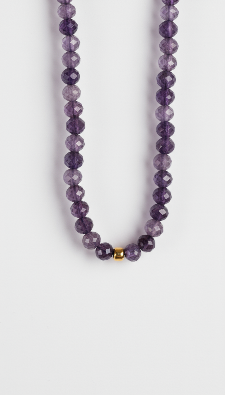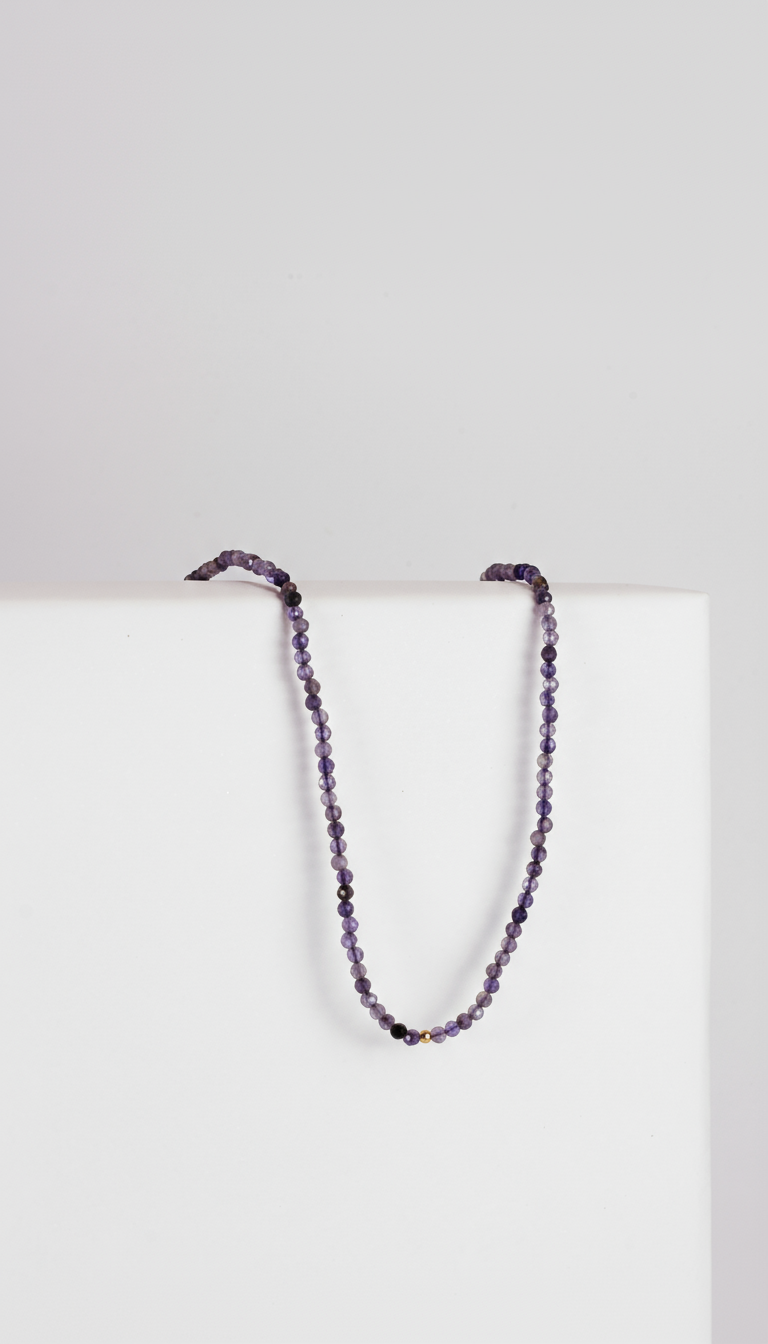 Colar com Iolita e 1 esfera em Ouro amarelo 18k. Comprimento: 45cm.