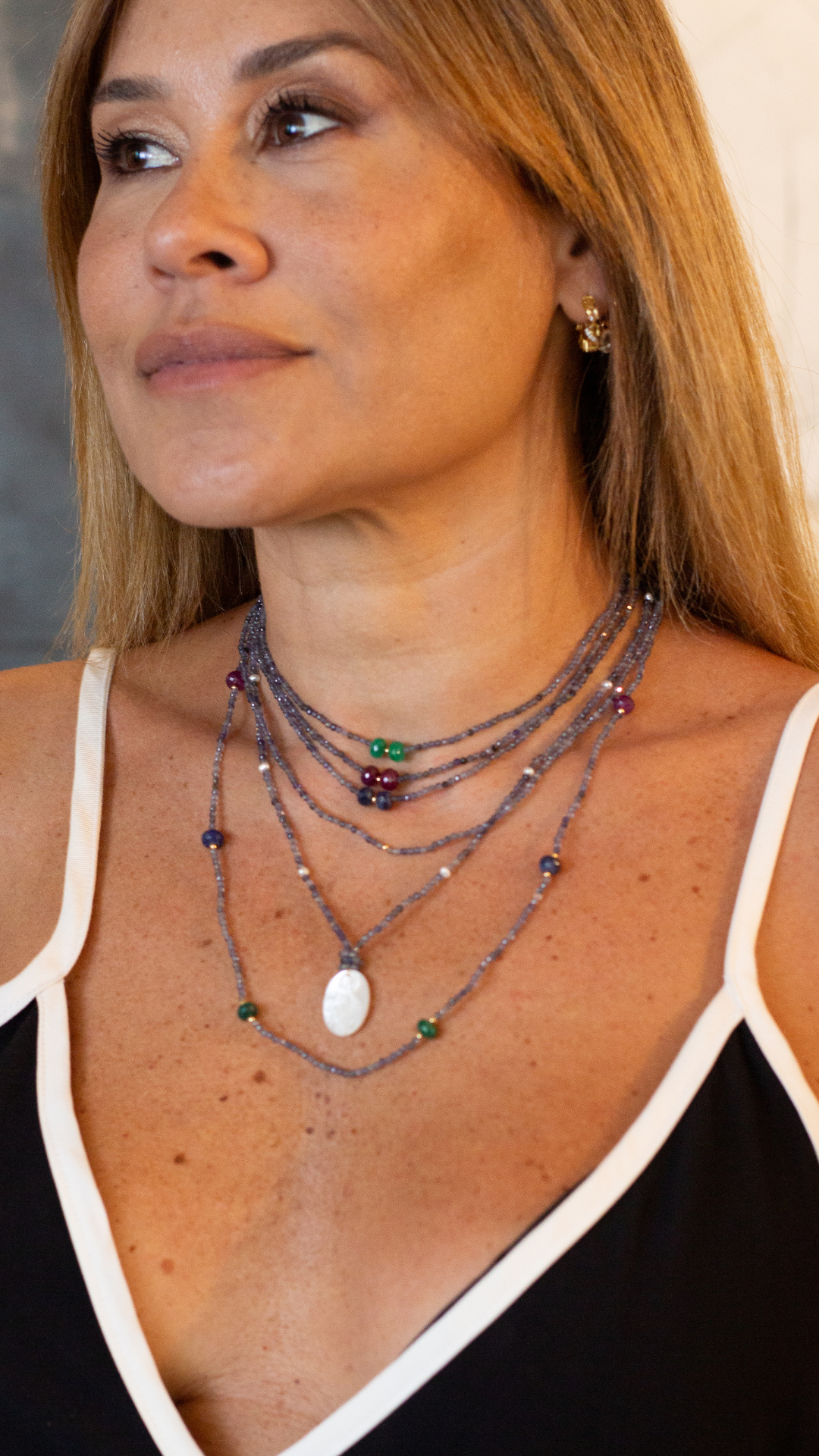 Colar Amar Iolita Safira Esmeralda e Rubi
